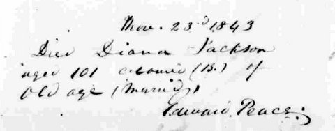 On this date, November 23rd, in 1843, Diana Jackson died of “old age” and is buried at Bethel Burying Ground. She had reached the age of 101 years. Of those interred, whose death certificates have survived, there are 19 individuals buried at the Queen Street cemetery between the ages of 90 and 103 years of age. This is astounding considering their life expediency was in the late 20s to early 30s! There is no reliable data at this point to determine with specificity the life expectancies of the Black men and women in 19th century Philadelphia. However, the First African Baptist Church Cemetery (FABC), located at 8th and Vine Streets in Philadelphia, was excavated and the remains examined during the 1980s. There is a 21-year overlap in usage between this cemetery and the Bethel Burying Ground – circa 1822 to 1843. There were 135 skeletons recovered and studied from the Vine Street graveyard. It was determined that the life expectancy of these individuals was 26.59 years according to anthropologist Dr. Lesley M. Rankin-Hill, author of A Biohistory of 19th-Century Afro-Americans: The Burial Remains of a Philadelphia Cemetery. This small book is a wealth of information on the 19th century Philadelphia African American community and the medical and socioeconomic struggles they endured. A must read for anyone who is serious about understanding the history of Black Philadelphians.