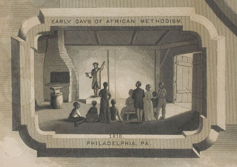 Detail of Bethel African Methodist Episcopal Church. Lithograph by W. L. Breton (Philadelphia, 1829). Library Company of Philadelphia