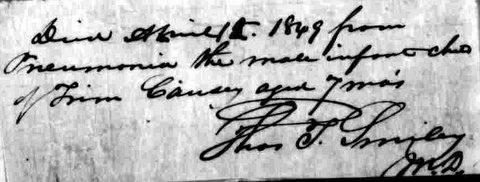 I have chosen to accept the spelling of the last name as “Corsey” because that is how it is spelled in several city directories.”Coursey” is used in the 1847 African American Census and we see that the hurried physician spelled it “Cansey.”