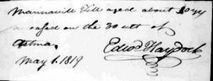 Ninety-year-old Manuel Till died this date, April 30th, in 1919 of complication due to Asthma and was buried at Bethel Burying Ground on May 1st. Born in 1729 he surely was enslaved at one point in his life. Research has not been able to uncover any other information on Mr. Till. There are five other individuals with the last name of “Till” buried on Queen Street. Hopefully, continued research will be able to add to this gentleman’s life story.