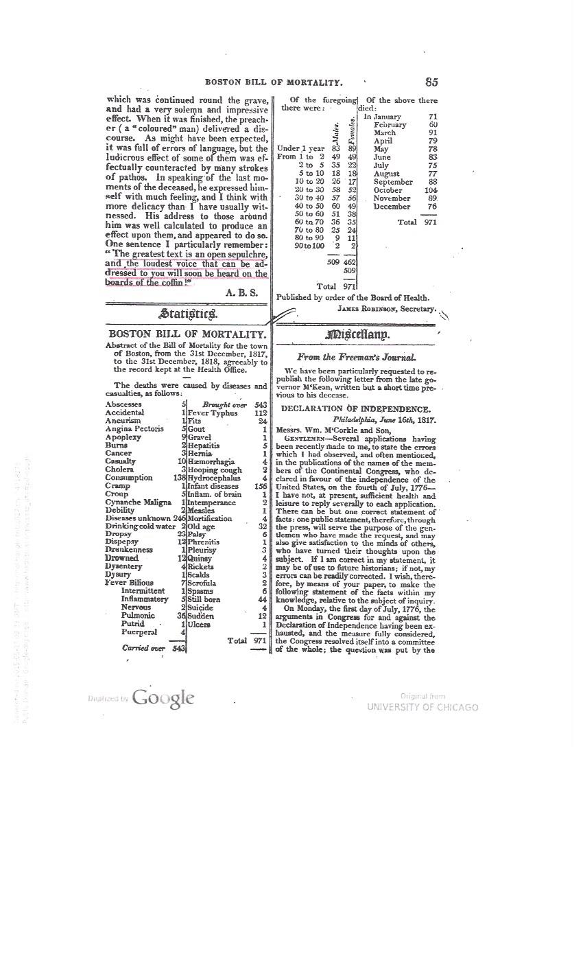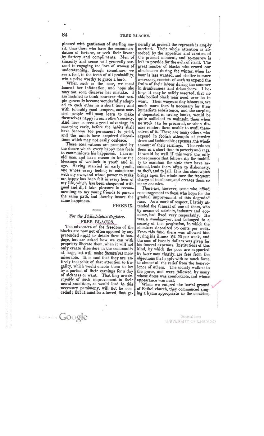 The following article was published in the 1819 January to June edition of The Register and National Recorder, vol. 1, p. 84-85. (Available at Google Books)