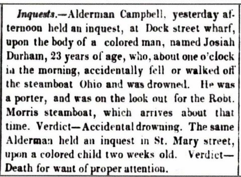1850: Bethel Church burial records “were lost,” according to William Carl Bolivar, “in the church Dissension of 1850.” (The Philadelphia Tribune, 10 Oct 1914)