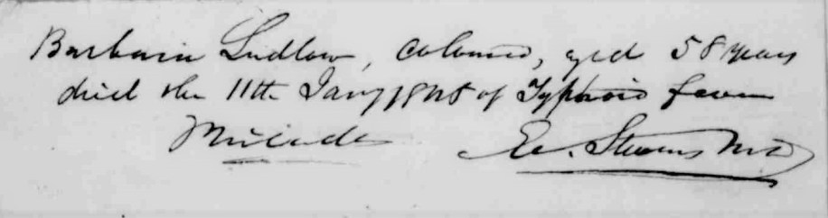 ludlow Posted by Terry Buckalew on January 7, 2019 This is an image for Fifty-eight-year-old Barbara Ludlow died this date, January 11th, in 1848 and was buried at Bethel Burying Ground. Images navigation Next →