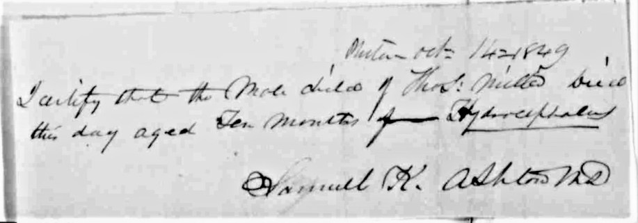 THOMAS MILLER Posted by Terry Buckalew on October 10, 2019 This is an image for The ten-month-old son of Thomas Miller died this date, October 14th, in 1849 and was buried at Bethel Burying Ground.. Images navigation ← Previous Next →