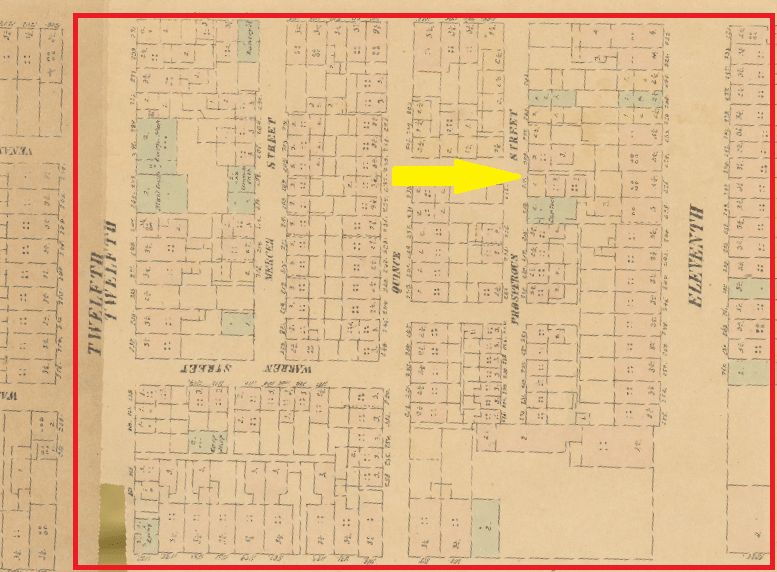 On the night of July 27, 1835, a mob of 1,500 white men and boys broke into and destroyed the homes of Black families on Red Row. Most of the African American adults were able to grab their children and escape through their back doors into the alleys and backyards of their neighbors. However “several men were concealed in a chimney in one of these houses, a torch was applied to burn them out, and the house was quickly in flames.” All the houses on the row were destroyed by fire. All the furniture was destroyed and the families’ valuables and food were stolen. A Black women who had given birth four days before was able to successfully escape with her newborn. She had no where to go and hid in the grass of a vacant lot. (2)
