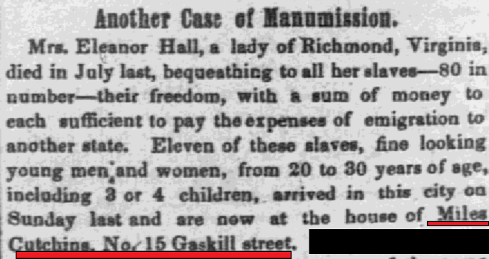 An 1847 census taker noted: “After being freed by his (Mr. Cutchins) master, he bought his wife for $250 and he has paid $875.00 for three other persons to save them all within 20 years.”