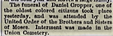 Thirteen-year-old Joseph Cropper died on a clear and mild day at the end of January when the temperature rose to a high of forty-nine degrees. He was buried, with dignity, by his family at Bethel Burying Ground. There is the beginning of a family tree at Ancestry.com