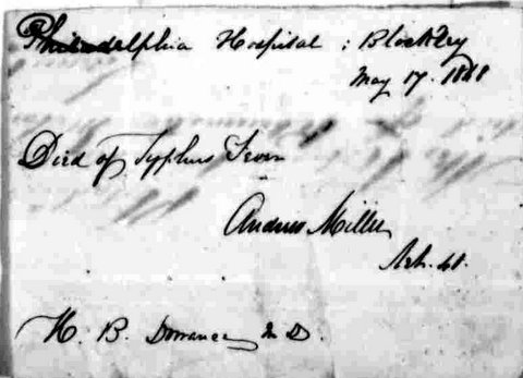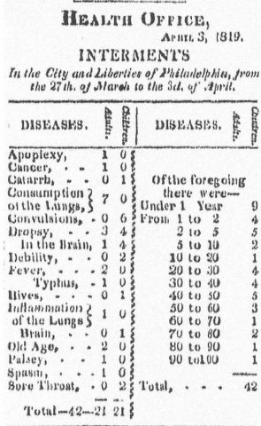 The one-year-old daughter of John B. Smith died of Catarrh Fever on this date, June 6th, 1848 and was buried at Bethel Burying Ground. The Smith family lived at the southeast corner of 10th and Christians streets where they ran a used clothing business out of their home. Ms. Smith was a seamstress and another adult in the family also worked in the store according to the 1847 African American Census. They paid $150 a year in rent. Mr. Smith reported his yearly income at $350.00.