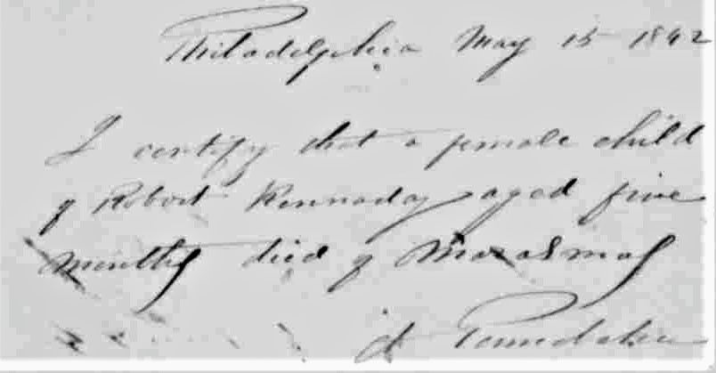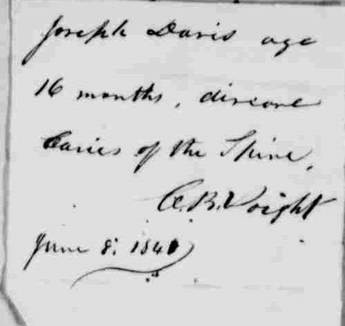 Sixteen-month-old Joseph Davis died this date, June 8th, in 1841 of a disease of the spine, possibly Spina Bifida a birth defect. Between 1840 and 1841, seventeen children died from Spina Bifida and a total of thirty-one from “Diseases of the Spine,” according to the Philadelphia Board of Health records.