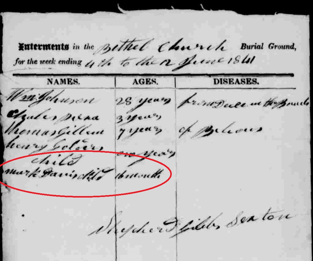 Little Joseph Davis was buried, with dignity, by his parents at Bethel Burying Ground.